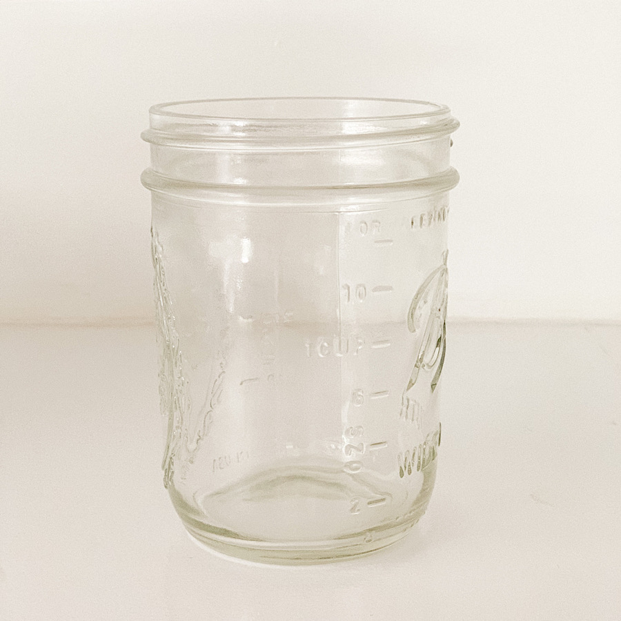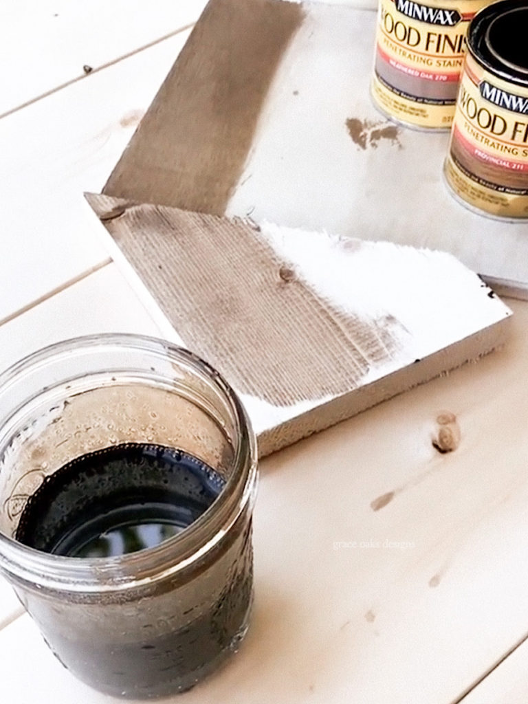 -Measure 1/2 cup Minwax Weathered Oak, pour into jar