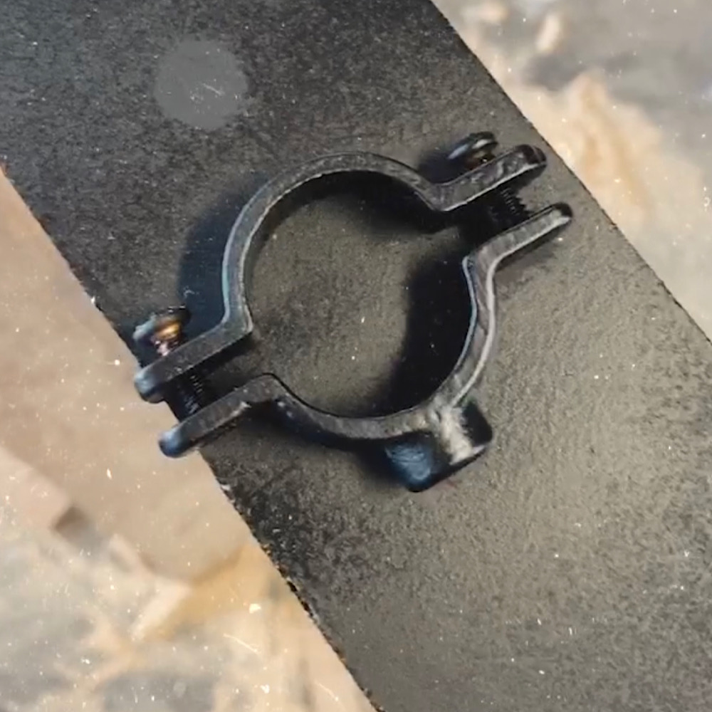 To attach the handles, determine where you want them to be and drill screw through center of the half piece of ring tubing. Then, add the dowel and add the top ring tubing piece over top of the dowel adding two screws on each side in their holes that reach the bottom piece.