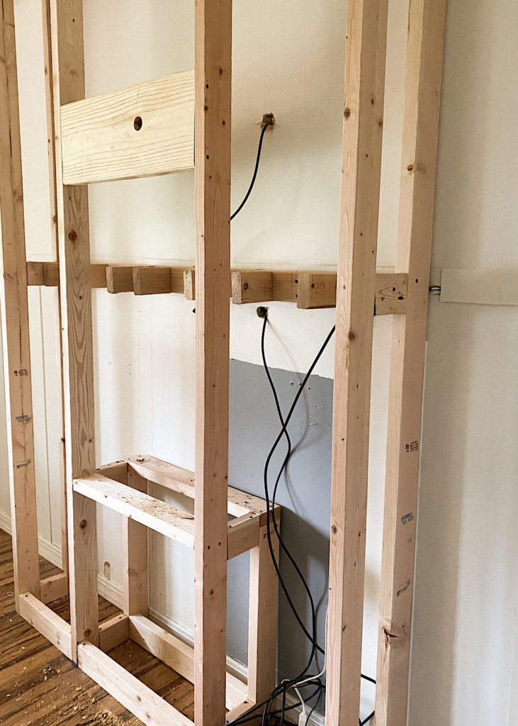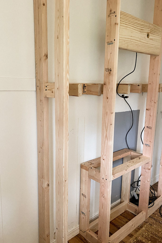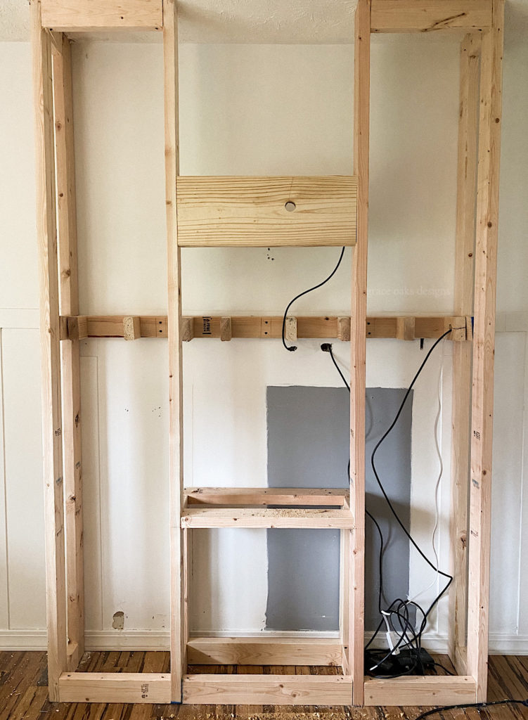 To start, we tore down our faux mantel – it was just framed craftsman style with a beadboard paneling inside. It was just a temporary place hold until we had time for this project! I’m so glad we MADE time before the holidays for this.