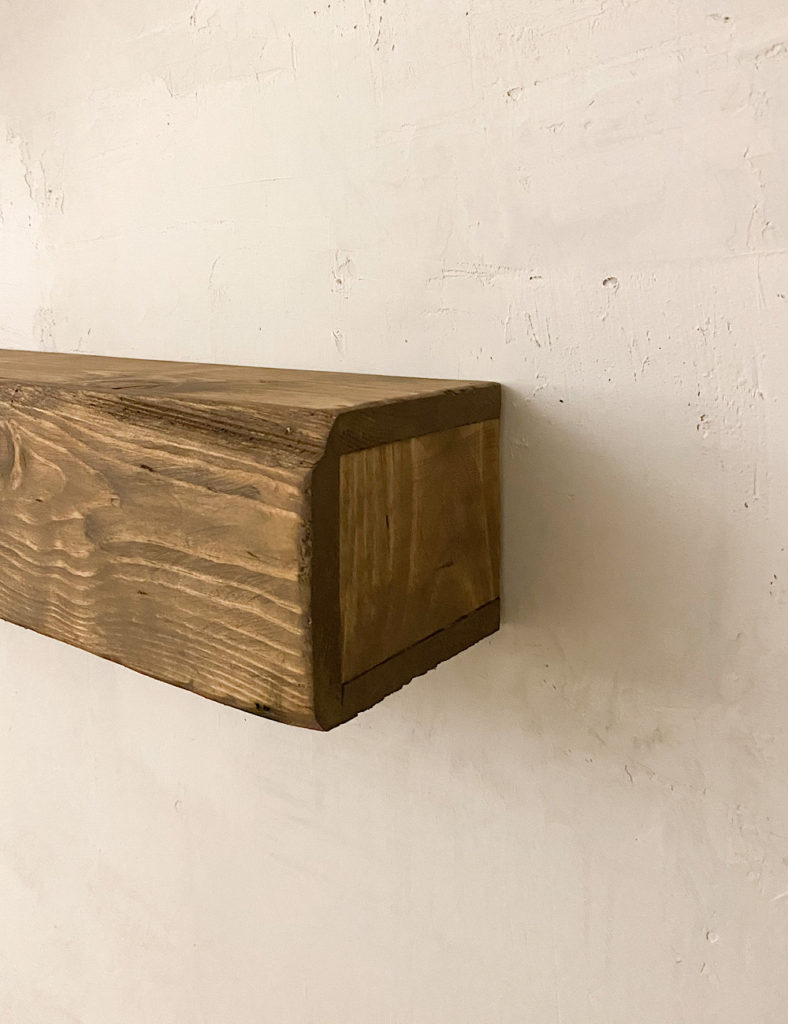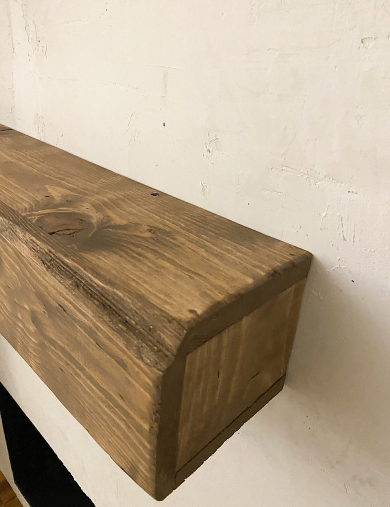 First, attach the 2×4 brace length of mantel using screws. Then, slide the mantel over top, and drill directly into mantel downward into bracket near the backside.