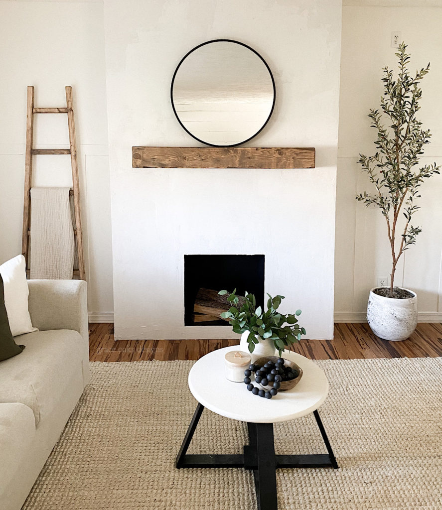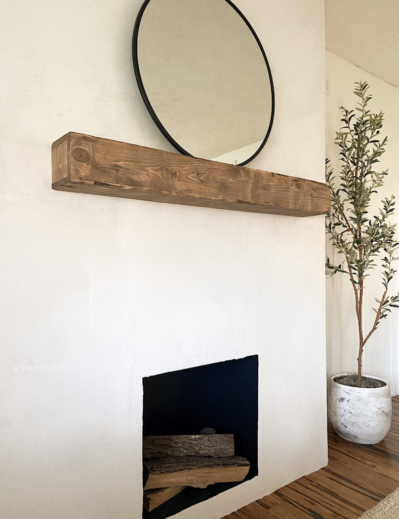 I have admired concrete fireplaces for a while now and knew our living room faux mantel would be the perfect spot to makeover creating a concrete focal point in this space. All the texture and dimension are what I love so much about concrete. It adds so much to a space! It feels very clean and modern while bringing character to our living room – which I love!