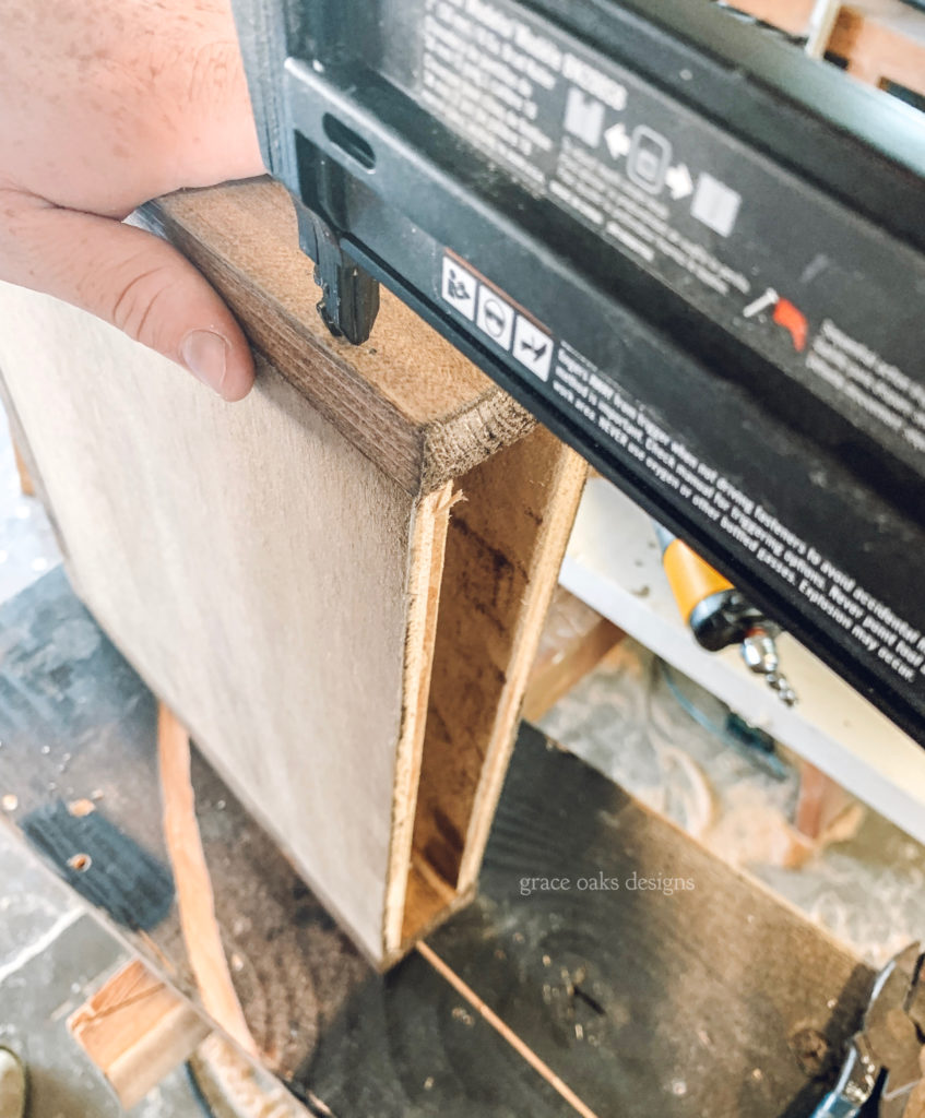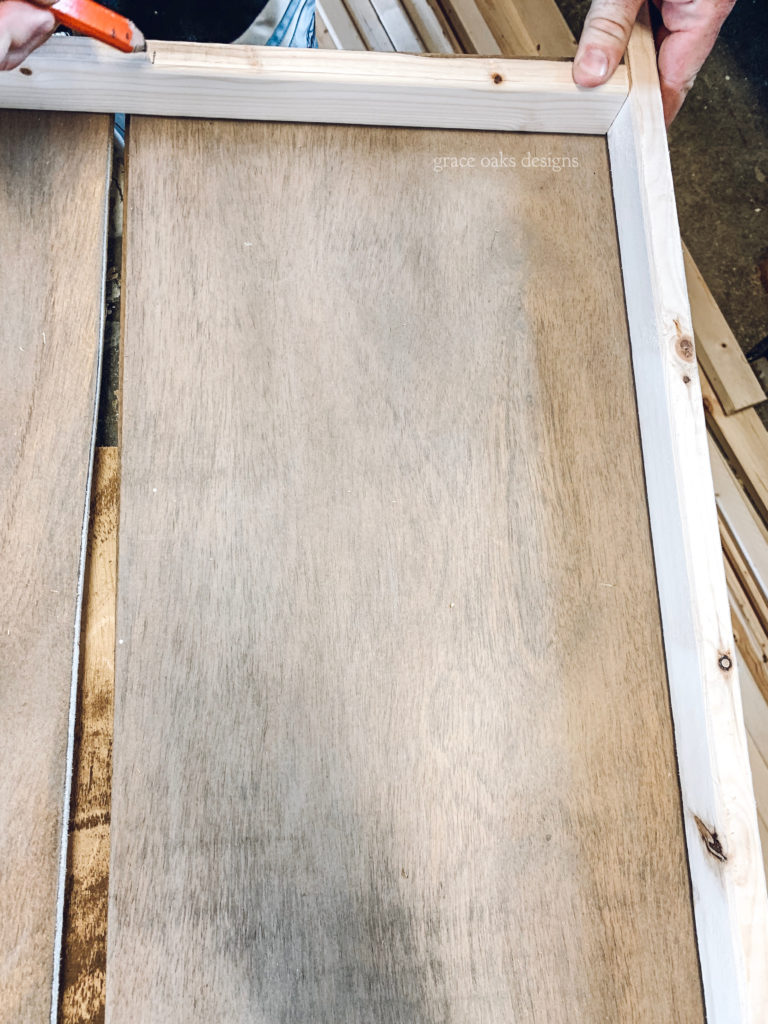 - 2. Nail the first plywood piece to the 1×3 frame you just made.