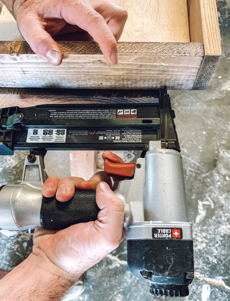 - 1. Using nail gun attach all 1×3 pieces at 90’ angles, making them flush.