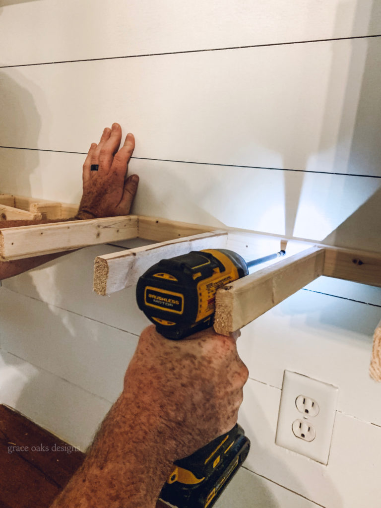 -The 1×2 pine boards for the brackets we used the least expensive pine since it isn’t visible and works just as well since it’s for the bracket.