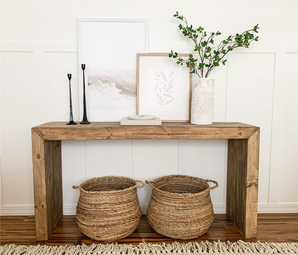 I don’t have nearly enough photos to show each step, but I truly hope this helps if you’re wanting to make our console table! I’d love to see yours if you do – be sure to tag me on IG or send me a photo, I love to share your projects inspired by our DIY’s!
