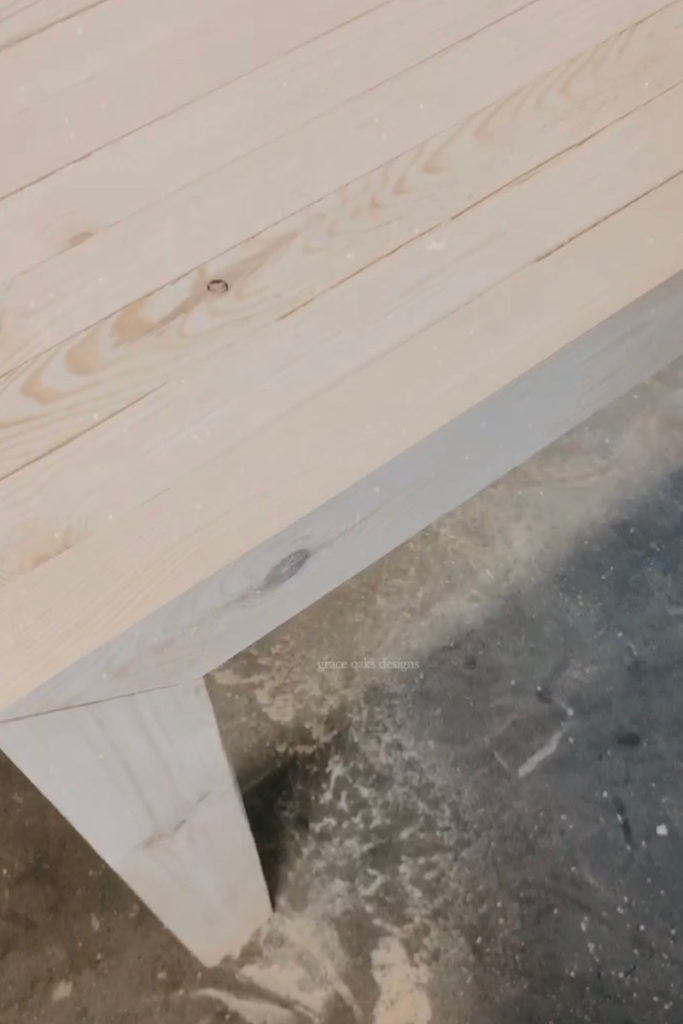 This one was a bit trickier without a planer to get those squared off edges on the pine boards. However, it is possible to get a clean finish without one. Using only 15 2×4 pine boards, this table cost about $50! Major dupe for that $500 table.