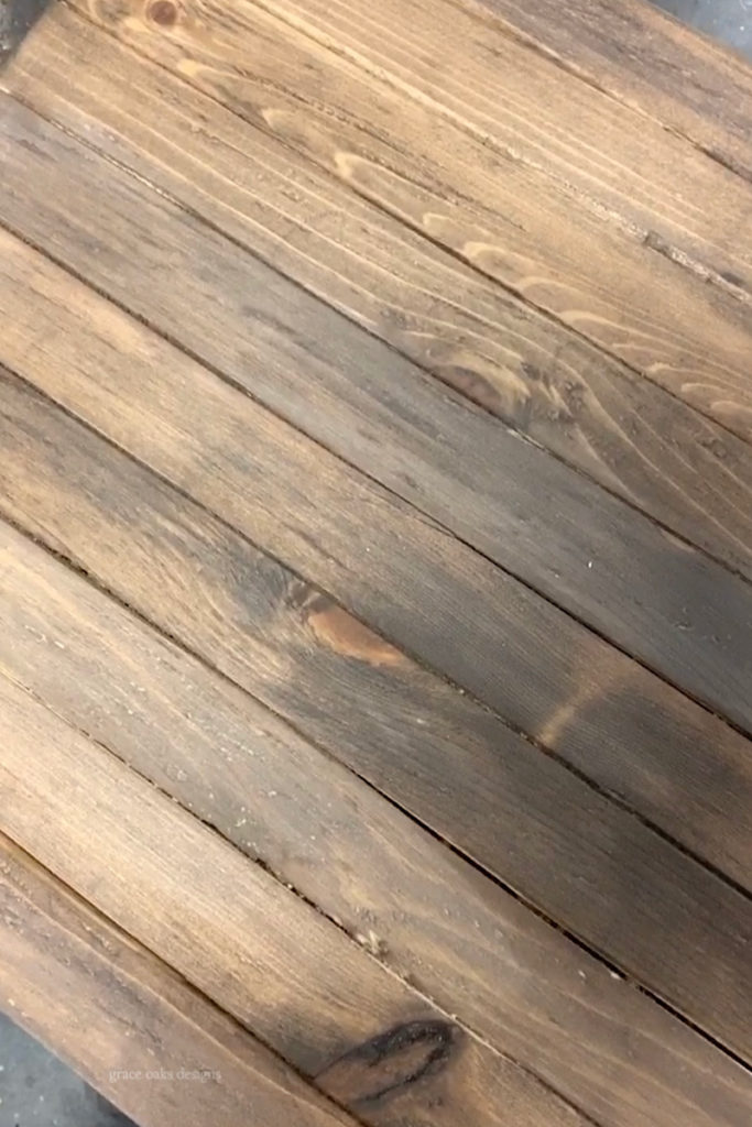 Hi! How I create and mix my custom stain can be found here- https://graceoaksdesigns.com/custom-mix-stain-at-home/ Remember to always test a scrap piece or the underside first. All wood tends to take it differently so I adjust a little here and there accordingly.