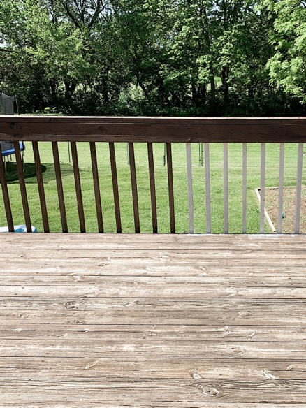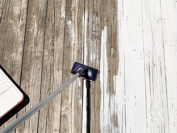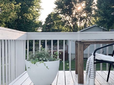 Having older boards that had some cracking and weathering I preferred the look of a solid finish. It made the deck feel smoother. I love this finish. This particular brand and type has cooling properties and is advertised to make your deck feel 20 degrees cooler. I wasn’t sure if it would really do much, but I’m so glad after several 90-degree days we can totally tell a huge difference in temperature on the deck. It isn’t hot to walk on bare foot and actually felt cooler.