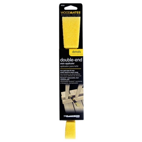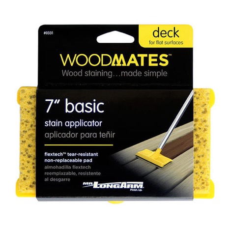 I found a few products that helped so much staining the deck. With this stain you can use regular painting supplies because it acts as a paint as well. However, we found this stain applicator pad worked so well for the flat surfaces, and the double-end sponge applicator for in-between the wood slats on the deck floor, as well as the spindles on the railing. I got both from Menards but Lowes has a version and you can find similar at Home Depot as well. I also used a flat chip brush and sponge brush to get a smooth finish on the top of the railing and to edge in. Also, highly recommend painting the screws if yours are exposed.