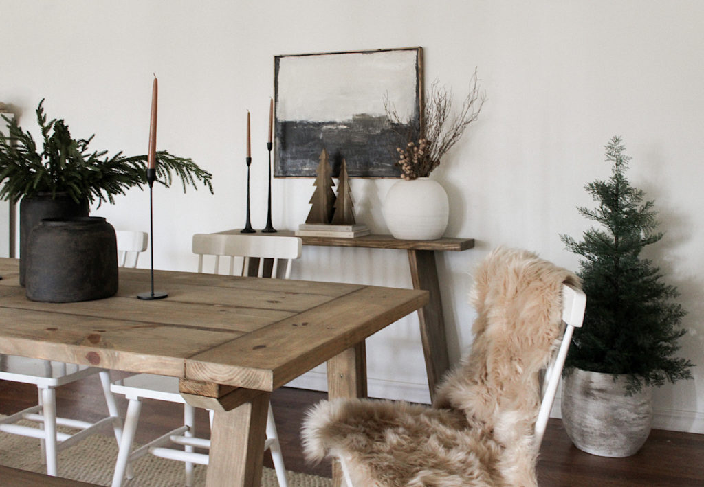 My full Christmas tablescape coming soon. Here’s our everyday look. Oversized vases/pots and candlesticks are a great low fuss option that create great impact.