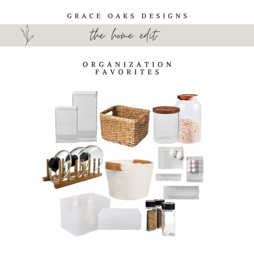 I function best in a neat, beautiful space. Not everyone will care about the appearance of storage, but I certainly do! When it looks nice and pretty, we’re all more likely to keep it that way! Also, having pretty storage makes our everyday essentials that stay out look nice and feels more put together. It can also act as its own decor. Less on the kitchen counters, bathroom vanity, dresser top. A pretty tray to corral glass storage jars with a few decorative accents added and it’s the perfect vignette on any surface that is both functional and beautiful.