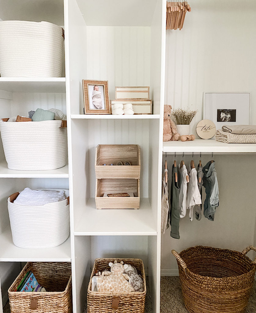 I like to keep my organization cohesive throughout the home. It makes it easier to swap baskets and bins when I need extra storage in one area and less in another. I always revisit our organization every few months. It’s helpful versus once a year to check how it’s working, how it could function better, and what we aren’t using or don’t need. Overall, the systems I use have kept us very organized. Day to day business will inevitably leave its mark needing a clean out every few months, but overall it keeps us functioning in such a clear and organized way throughout!