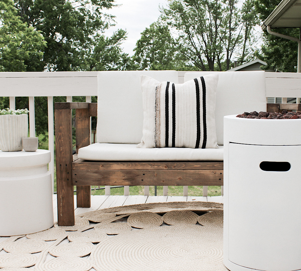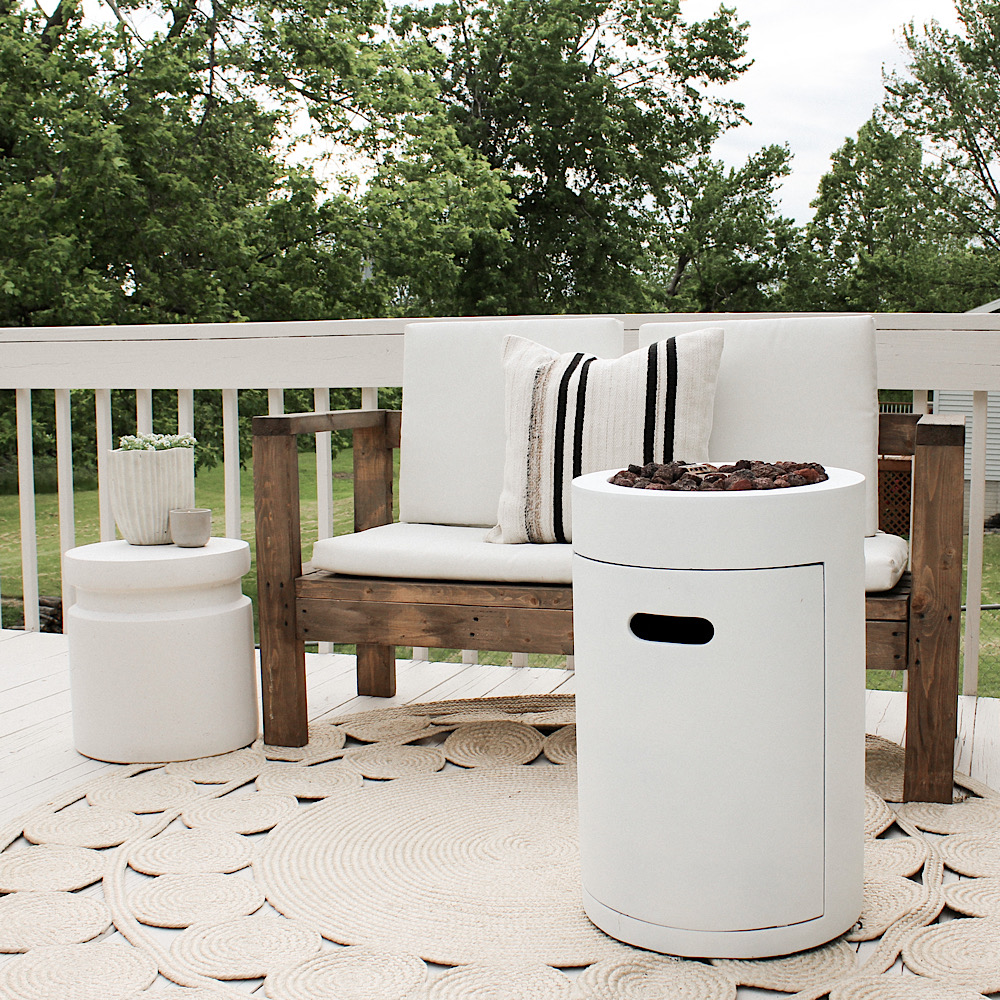 Last year we used Rustoleum high heat spray paint to paint our fire pit and I love it! Add black lava rock and you’ve got that dreamy Seaside or Cali look for so much less!
